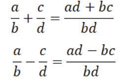 , operasi penjumlahan dan pengurangan dilakukan dengan menyamakan penyebut terlebih dahulu: